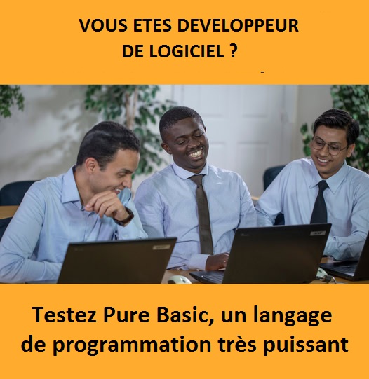 fonctionne sous Windows, Linux, MacOS X et Raspberry. véritable compilateur qui produit des exécutables compacts et optimisés. utilise la syntaxe du langage BASIC, très répandue et simple à apprendre. PureBasic a été conçu aussi bien pour les débutants que pour les programmeurs expérimentés. Nous avons consacré beaucoup de temps et d’efforts pour vous proposer un langage rapide, fiable et convivial. Malgré sa syntaxe de base simple et rapidement assimilable, les possibilités de PureBasic sont infinies, grâce à de nombreuses caractéristiques évoluées comme, entre autres, les pointeurs, structures, procédures, listes dynamiques, etc. Le programmeur expérimenté n’aura aucune difficulté à accéder aux structures du système d’exploitation et aux API’s. Commandes intégrées optimisées pour facilement développer n'importe quels jeux ou applications. l'IDE inclut un débogueur sofistiqué, un profileur, un éditeur de fenêtres et une compilation extrêmement rapide. Utiliser PureBasic est à la portée de tous: installez le programme, lancez l'IDE et commencez à developper votre application immédiatement. Les programmes créés sont petits et optimisés, similaires à ceux créés en C/C++. Disponible sous Windows, Linux, OS X et Raspberry. Le code source est compatible entre ces plateformes et les programmes générés utilisent les API natives de chaque plateforme pour un maximum de performance et une intégration optimale. Large panel de fonctions intégrées (1600+) pour créer rapidement des applications ou des jeux Supporte Windows (x86 - x64), Linux (x86 - x64), OS X (x64, M1) et Raspberry (arm32, arm64) Basé sur les mots clefs du langage BASIC Compilateur BASIC très rapide qui crée des exécutables optimisés Les exécutables créés fonctionnent sans DLLs externes, sans interpréteurs Support des procédures et des structures pour la programmation avancée Support de l'unicode Accès total aux API's du système d'exploitation pour les programmeurs avancés Fortement typé, pour éviter les erreurs de programmation Programmation facile de jeux en 2D à l'aide de commandes dédiées (DirectX, OpenGL) Programmation 3D facile à l'aide de OGRE Utilisation optimale des possibilités de chaque machine par l'utilisation de commandes spécifiques Le code source est portable entre Windows, MacOS X, Linux et Raspberry Editeur de texte et système de développement dédiés à PureBasic Debugger intégré permettant d'exécuter un programme pas à pas et de déceler facilement une erreur |